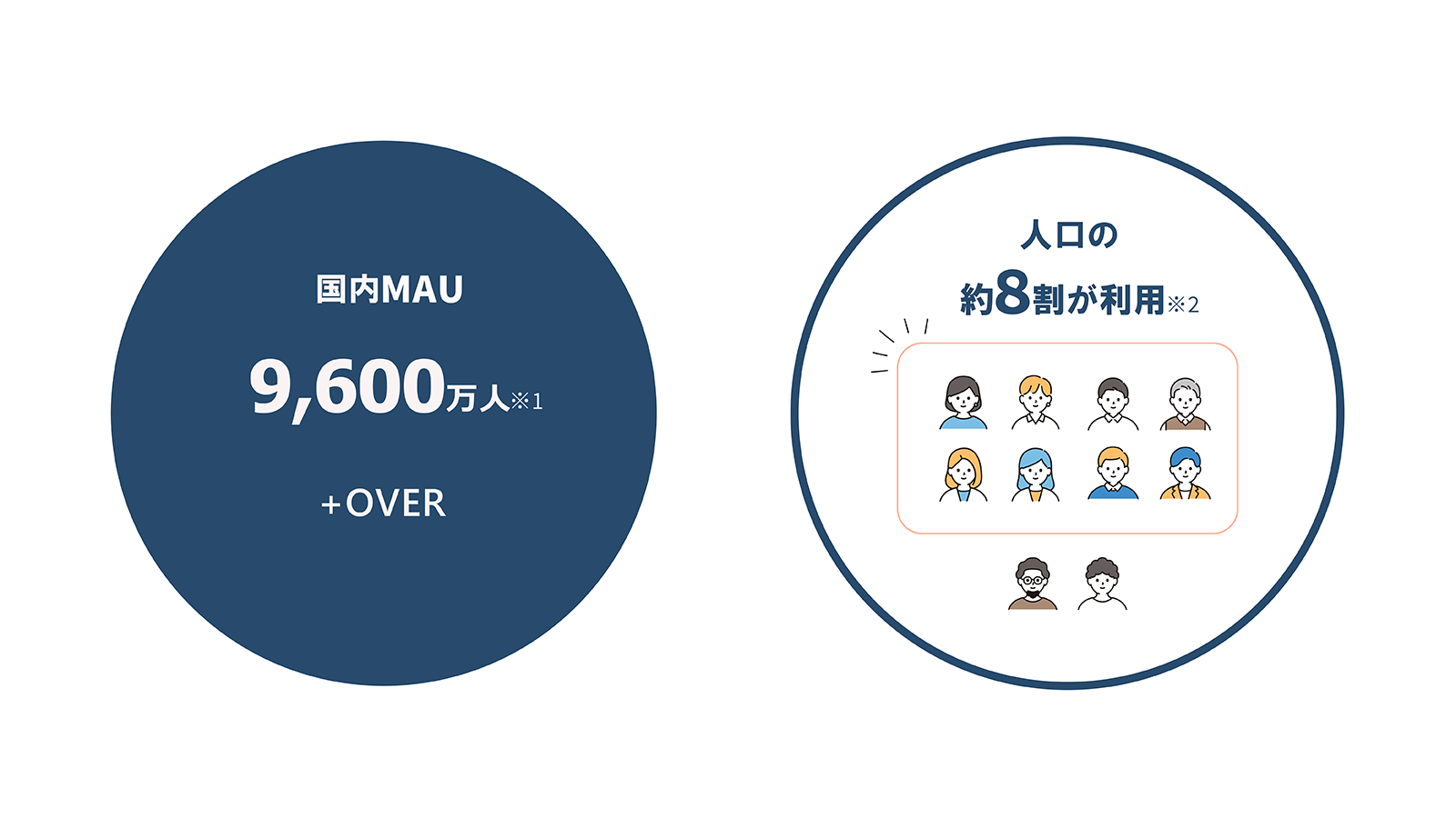 ※LINEの国内月間アクティブユーザー9,600万人÷日本の総人口1億2451万1000人(2023年6月1日現在[確定値]総務省統計局)