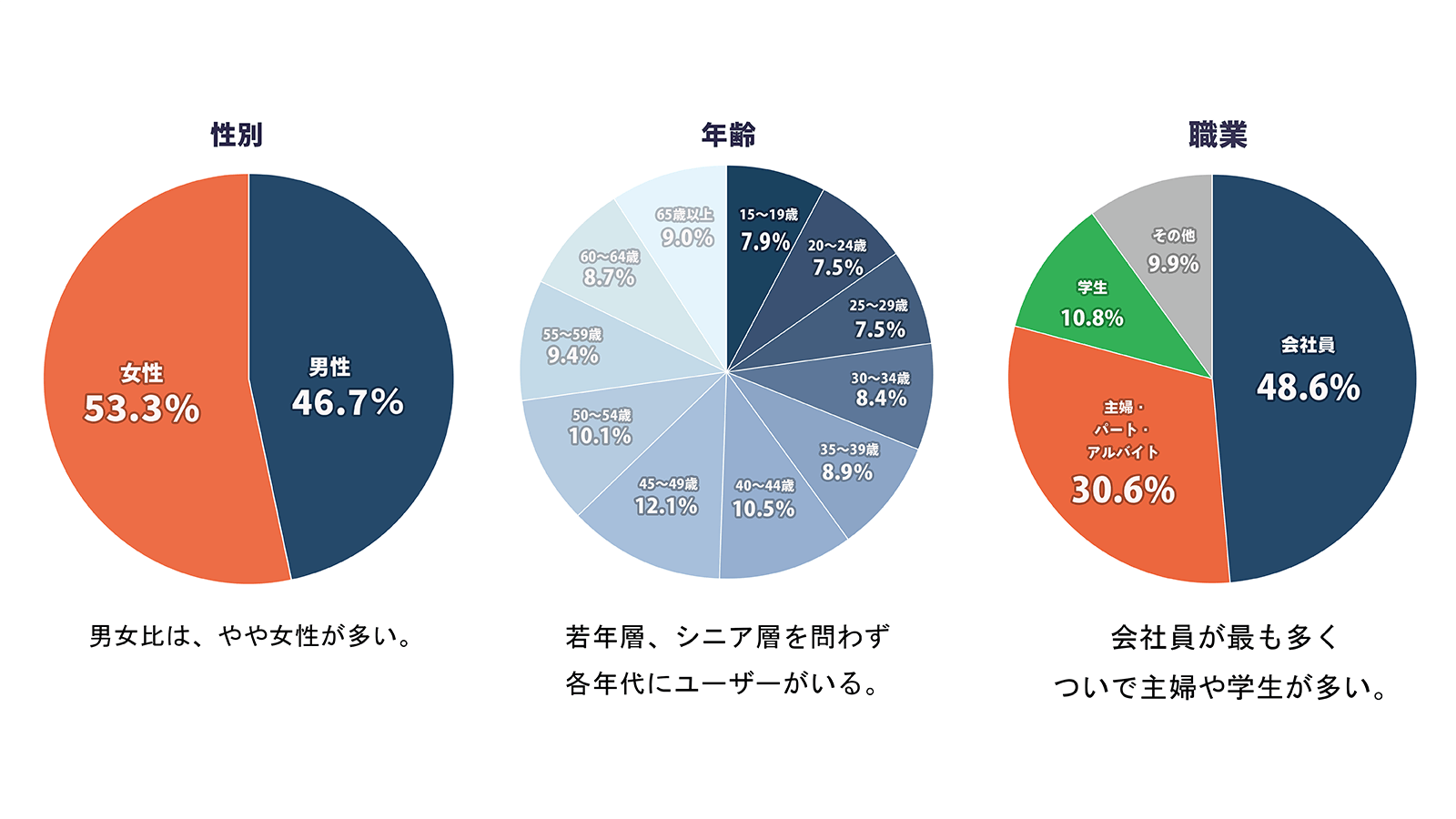 また、LINEのユーザーは性別や年齢、職業にも偏りがないので、LINE公式アカウントを利用すれば幅広いユーザーへアプローチできます。